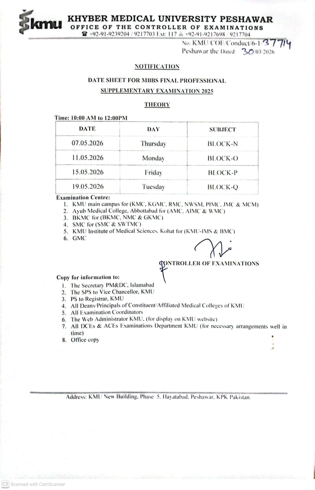 | Revised Date Sheet MBBS Examination 2023 |